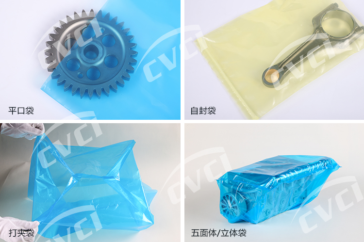 氣相防銹塑料薄膜以聚烯烴類樹脂為基材,加入揮發(fā)性緩蝕劑(VCI),經(jīng)過一些列工藝制成。氣相防銹膜在實(shí)際應(yīng)用中主要以袋狀或片狀形式呈現(xiàn)(詳見產(chǎn)品狀態(tài)),包裝保護(hù)客戶的產(chǎn)品,集防銹與包裝功能為一體。我們膜的厚度、顏色、尺寸及形式根據(jù)客戶實(shí)際需求進(jìn)行定制化、個(gè)性化生產(chǎn)。