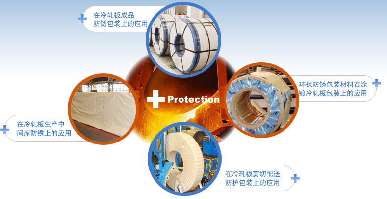 沈陽(yáng)防銹是國(guó)內(nèi)率先將氣相防銹技術(shù)從軍事領(lǐng)域引用到冶金領(lǐng)域的企業(yè),經(jīng)過(guò)30余年的發(fā)展,我們已與國(guó)內(nèi)冶金行業(yè)中90%的鋼鐵企業(yè)建立了合作關(guān)系(寶鋼、太鋼、武鋼、鞍鋼、本鋼、包鋼、首鋼、攀鋼等)。通過(guò)與冶金客戶的長(zhǎng)期合作,我們開(kāi)發(fā)了系列冷軋板材用防銹包裝產(chǎn)品,尤其是汽車鋼板、電工鋼板防銹產(chǎn)品更是深得用戶的贊譽(yù)。連續(xù)多年榮獲寶鋼“A級(jí)合格供應(yīng)商”稱號(hào)。同時(shí),我們的防銹防護(hù)產(chǎn)品還遠(yuǎn)銷海外,客戶包括國(guó)際最大的鋼鐵集團(tuán)阿賽洛米塔爾、全球領(lǐng)先的銅和銅合金集團(tuán)維蘭德、世界知名鋼鐵企業(yè)浦項(xiàng)集團(tuán)等。